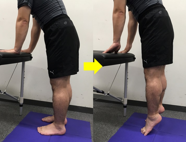 写真5 装具が取れたら、両足つま先立ち練習などを行う