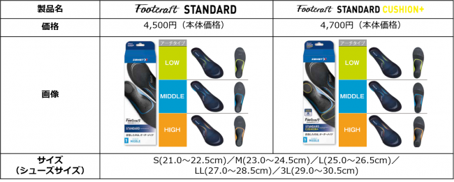 ファンクショナル(機能性)インソール※「Footcraft STANDARD」「Footcraft STANDARD CUSHION+」を11月下旬より全国のスポーツ店にて発売いたします。