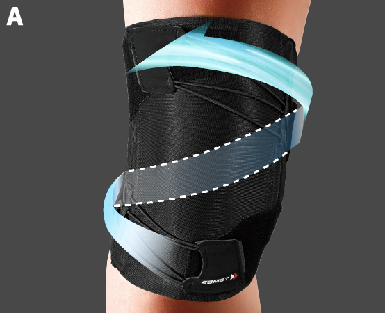 従来製品ではヒザ外側のトラブルのみへの対応でしたが、新モデルでは、同じ動きを逆回旋させることでヒザ内側のトラブルにも対応できるのでは、という発想のもと開発し、ヒザ内側のトラブルにも対応できるようになりました。さらにランニング中に「サポーターがズレても回旋方向をコントロールするサポート力を維持する」という機能も盛り込んでいます。
