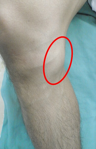肉眼での鵞足部の腫れ