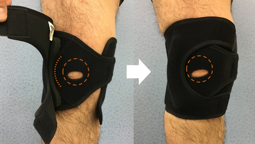 写真3 ダイナミックパテラブレース:膝蓋骨外側に脱臼抑制のパッドが入っている