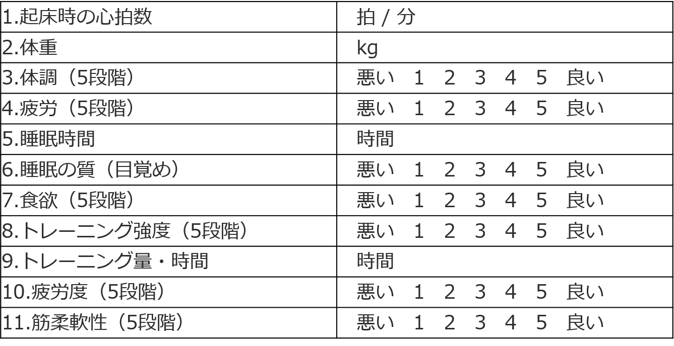 下記の項目、方法を参考に指導者と選手が情報を共有しやすいようにアレンジしてみてください。