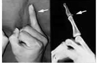 写真 DIP関節内骨折。突き指であるが実は骨折している。