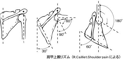 このように上肢が外転するときは、約2/3は肩関節が、残りの約1/3は肩甲骨が動くことによって、スムーズな上肢の動きが遂行されるのです。
