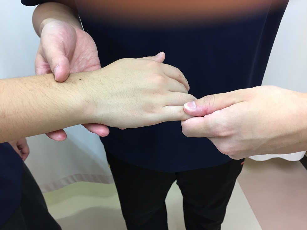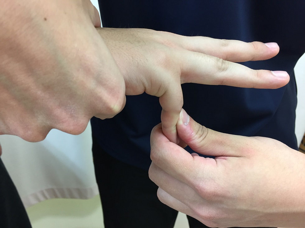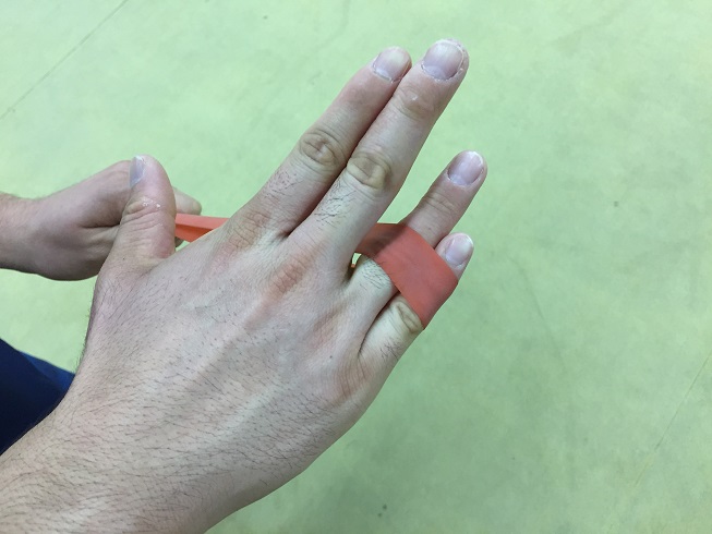 バディテープを用いることにより、隣接指の運動と同時に患指を運動させることができる