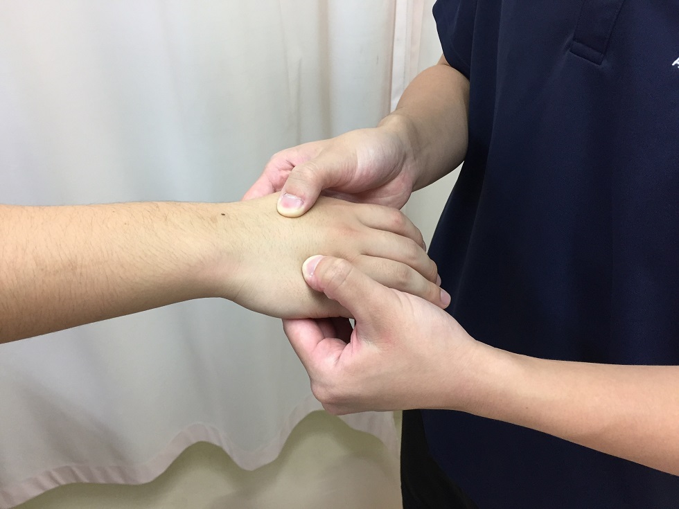 初めに、温浴やホットパックなどの物理療法を行います、その後、関節の拘縮(こうしゅく)を改善させるために、マッサージや牽引で他動的に筋肉や関節にアプローチします。