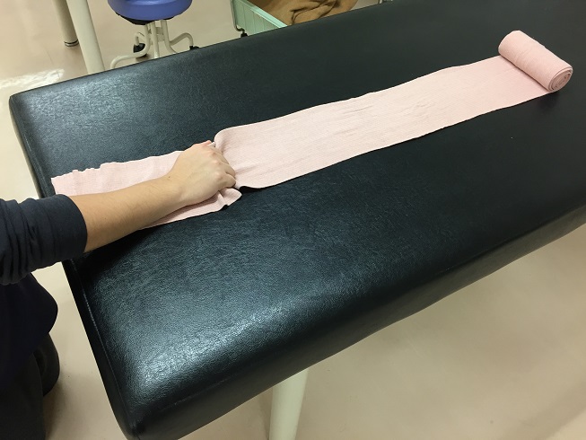 弾性包帯やタオルを手繰り寄せながら握っていく