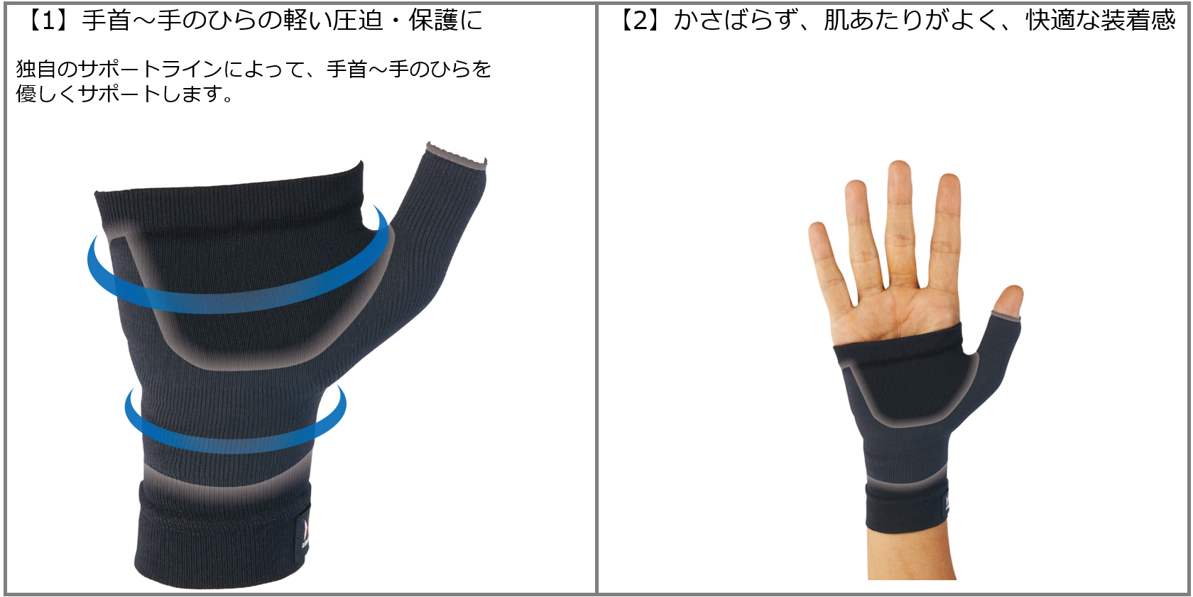 手首から手のひらの軽い圧迫・保護に