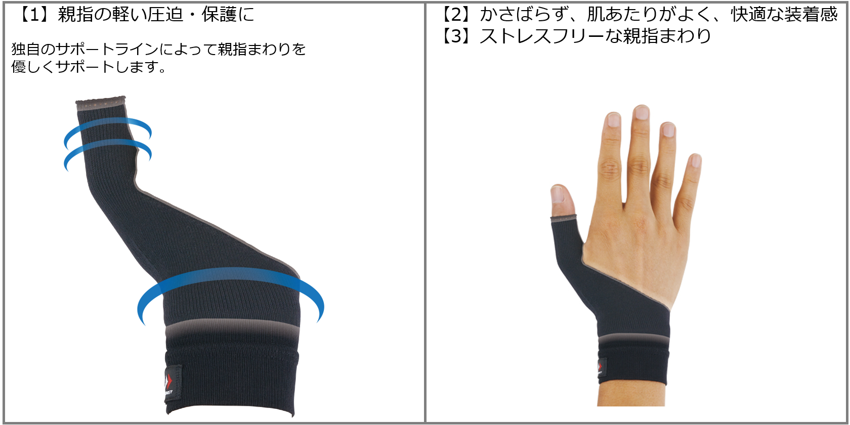 親指の軽い圧迫・保護に