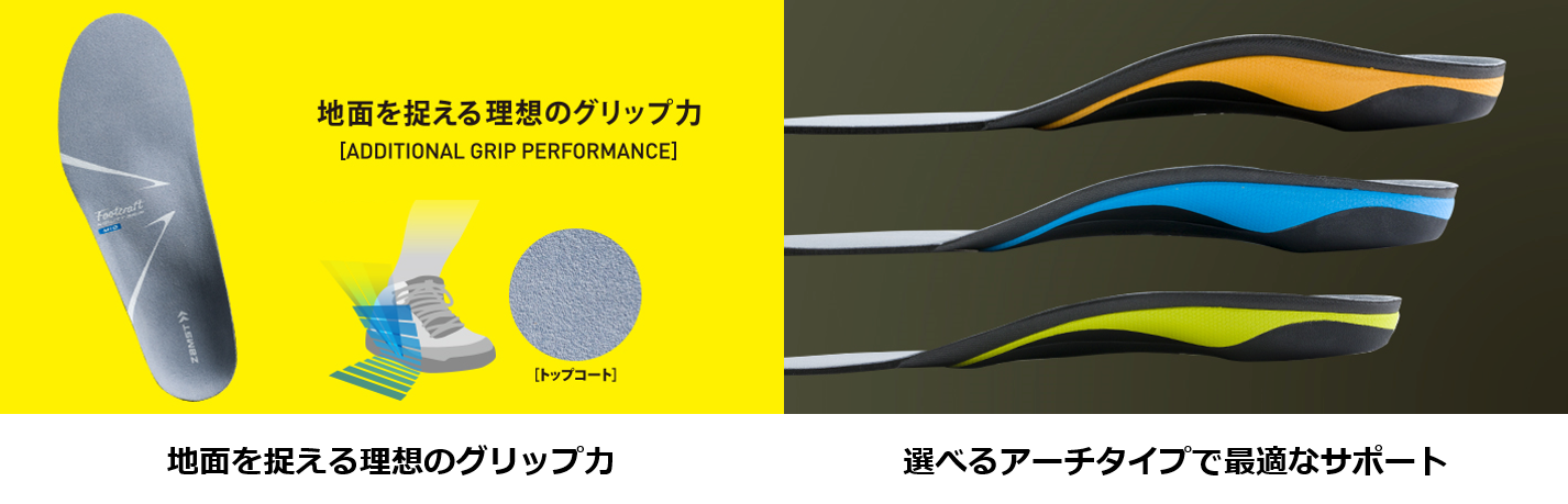 「Footcraftシリーズ」は、スポーツ用サポーターシェアNo.1※の「ザムスト」が、同様に整形医療分野の専門知識を投入し開発した機能性インソールです。成形の必要がないレディメイドインソールでありながら、自身の足に最適なアーチの形を選べることで、オーダーメイドインソールに近い「優れたフィット性」「高い安定性」「しなやかなサポート」を実現しました。2017年11月の発売以来、全国約800店舗で展開し、1年4ヶ月で既に約18万足の出荷を達成するなど高い評価を得ています。